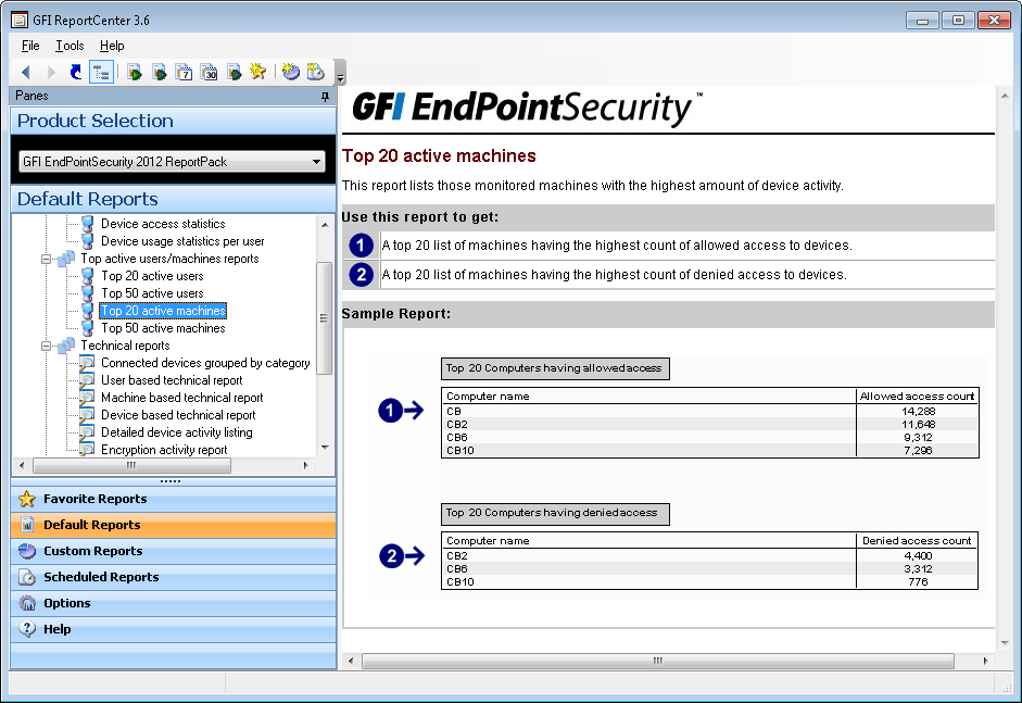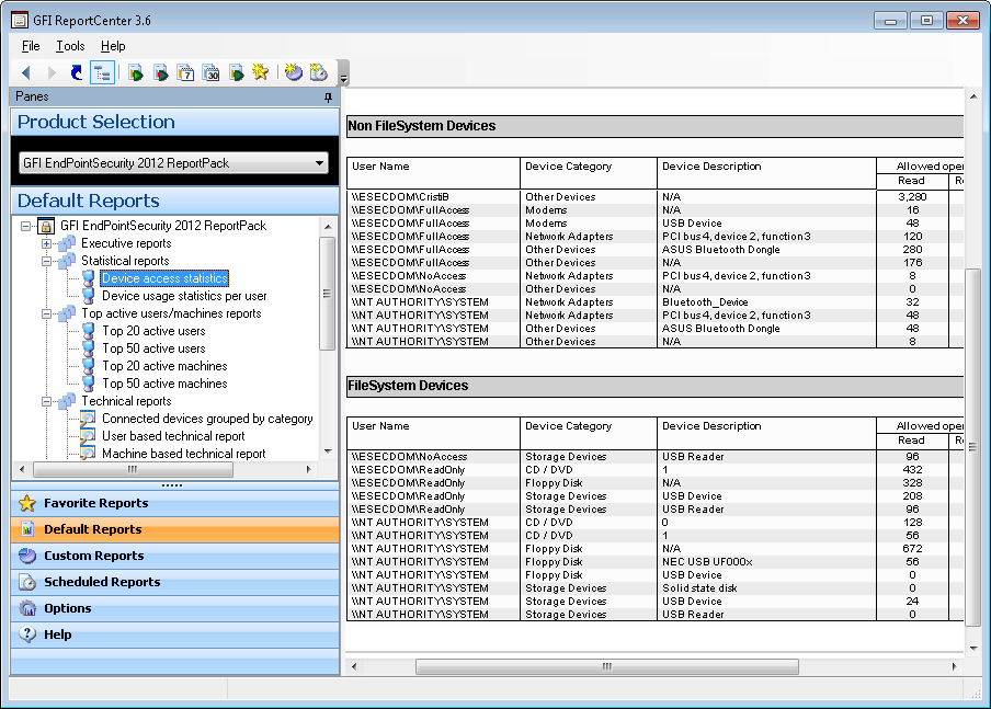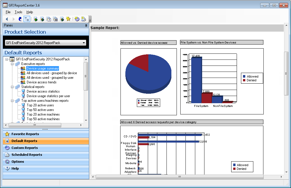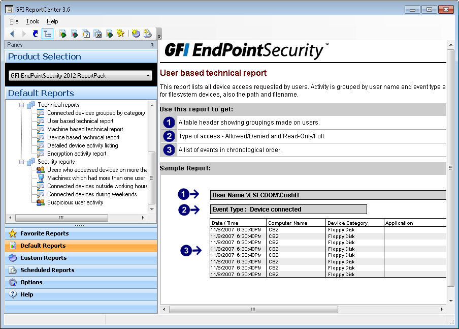 Erstellen Sie umfassende Berichte zur Verwendung mobiler Speichermedien mit dem GFI ReportPack - erfasst sogar Dateinamen ausgetauschter Dokumente!