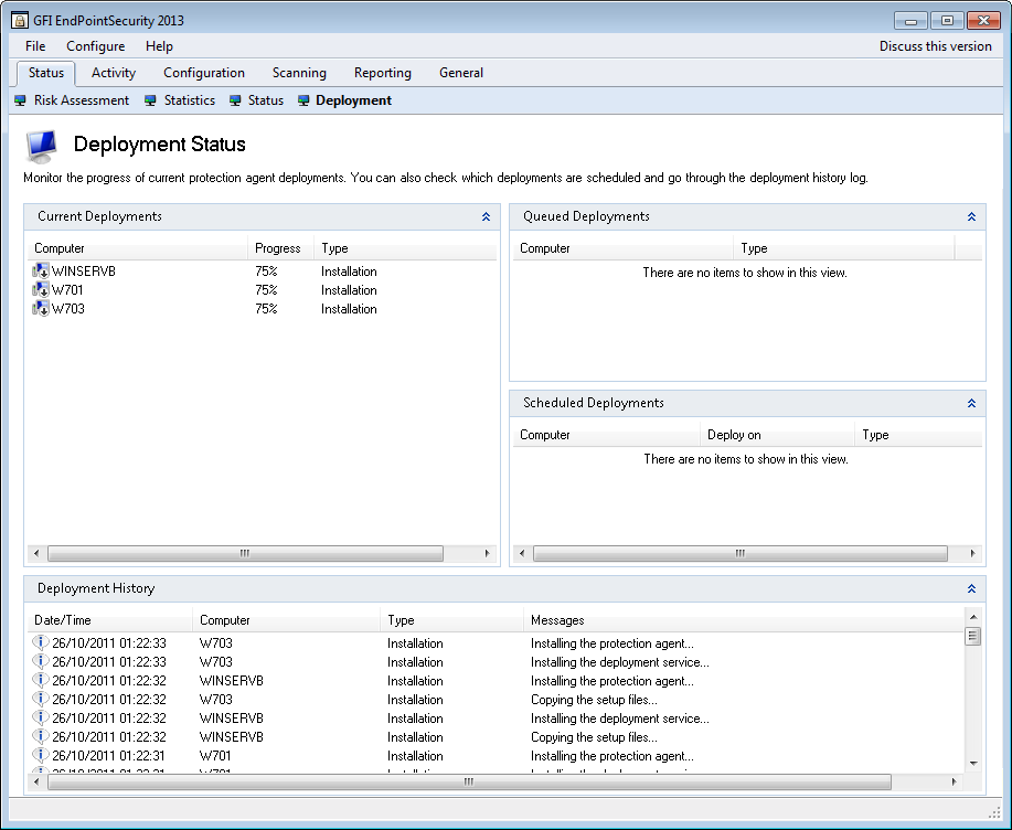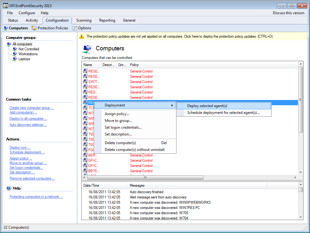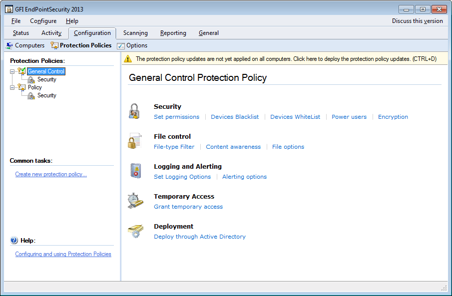 Erhalten Sie über die Benutzeroberfläche von GFI EndPointSecurity Statusüberwachungen und Warnungen in Echtzeit.